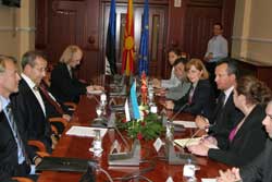 Осврнувајќи се на евроинтеграциските процеси претседателот на Собранието, г. Трајко Вељаноски истакна дека очекува по извештајот на Европската комисија,  Министерскиот совет во декември да го одреди датумот за отпочнување на преговорите. Притоа сакам да истакнам дека во тие процеси, билатералните спорови не можат да бидат критериум или пречка. Денеска овие интегративни процеси не може никој да ги запре, но може да ги забави, а тоа  не е добро ниту за нас, ниту за регионот, ниту за ЕУ, подвлече претседателот на Собранието, г. Трајко Вељаноски.  Затоа очекувам како и досега Република Естонија принципиелно да ја поддржува Република Македонија, а  во исто време токму во тие процеси на преговори, соработката меѓу двата парламента може да се интензивира, бидејќи вашето искуство секако ќе ни биде корисно.