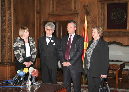 entretien du Président de l’Assemblée de la République de Macédoine, Monsieur Trajko Veljanoski avec l’ambassadeur de la République de Pologne, S.E. Karol Bahura et la présidente de la Communauté juive en République de Macédoine, madame Bjanka Subotik, le 25 janvier 2010