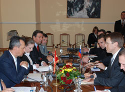 На средбата и двете страни билатералните односи ги оценија како многу добри во сите сфери од политиката, културата и економијата, а се интерес и на двете држави и затоа тие постојано се надоградуваат и прошируваат. Претседателот Трајко Вељаноски посебно ја истакна соработката меѓу двата парламенти и тоа на сите нивоа, од групите за пријателство, комисиите и на ниво на редовни средби на претседателите. Зборувајќи за актуелните состојби, претседателот на Собранието Вељаноски истакна дека во европската практика на парламентарната демократија одамна е напуштен бојкотот како метода на притисок.