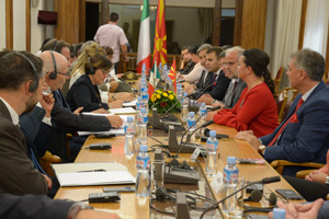 На почетокот на заедничката средба, претседателот Џафери изрази задоволство од извонредните и пријателски односи меѓу Република Македонија и Италијанската Република. Тој истакна дека особено се цени фактот што Италија силно ја поддржува нашата земја во рамките на Берлинскиот процес, на мултилатерален план и воопшто во севкупните евроатлански интеграции на Република Македонија.