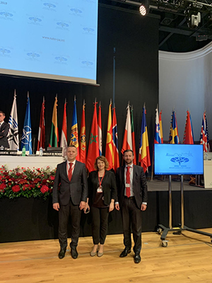 Г-ѓата Медлин Мун, претседателка на ПС на НАТО, на пленарната сесија на ПС на НАТО, истакна дека вредностите на НАТО мора да се чуваат и заштитат и решително да се пристапи на било каков напад од трети страни, што ги поткопува демократските основи на нашите општества и институции и дека Алијансата во текот на нејзиното 70-годишно постоење ја исполнила својата цел како отпорно и прилагодливо средство за справување со предизвиците на тероризам, сајбер и хибридното војување.