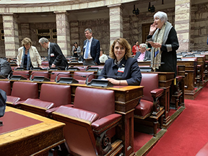 Делегацијата оствари разговор со Христос Карагианидис, шеф на грчката делегација во ПС на НАТО, при што беа споделени едногласни заложби за поинтензивна меѓупарламентарна соработка, посети и размена на искуства од парламентарното работење. Со претседателот на Комисијата за надворешна политика, Константинос Дузинас, Делегацијата разговараше за можните начини на соработка, при што се заложија за формирање на пратеничка група во Грчкиот парламент за соработка со македонскиот парламент, со што со својот пандан во Собранието ќе се воспостават темелите на пријателска и конструктивна комуникација и соработка.