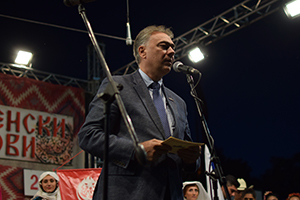 Секако, во оваа прилика имам морална обврска мојата почит и благодарност да ви ја изразам на сите Вас - учесници на овој фестивал, дојдени тука со една единствена цел, во наредниве фестивалски денови, преку своите песни и игри да ја пренесете универзалната порака на прифаќање и почитување на различностите. Вие сте вистински амбасадори на културата на еден народ. Тоа го правите на еден нетипичен, сепак толку универзален јазик, односно, преку преплетување на културните мемории на земјите од кои доаѓате, преку спецификите на ритамот и мелосот, разиграното шаренило на автентичните везови и фолклорни детали.