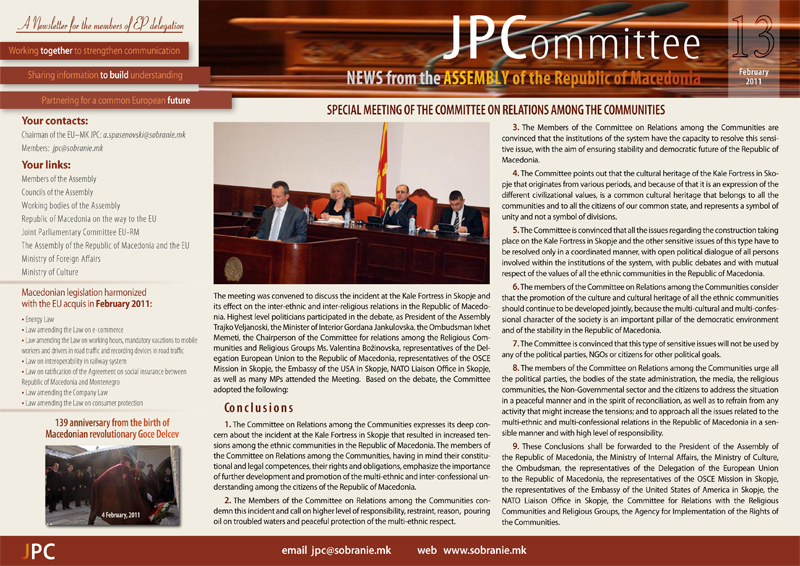 DOLI NUMRI I TREMBËDHJETË I BULETINIT TË KOMITETIT TË PËRZIER PARLAMENTAR RM-BE