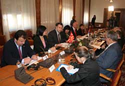 Kryetari i Komisionit për Çështje Evropiane, z. Petar Pop Arsov e njohu delegacionin me përbërjen dhe punën e komisionit, me çka theksoi se në komision janë të përfaqësuar të gjitha partitë politike dhe koalicionet dhe se komisioni i shqyrton ligjet dhe bën kontroll, se a janë ato plotësisht të harmonizuara me të drejtën evropiane.